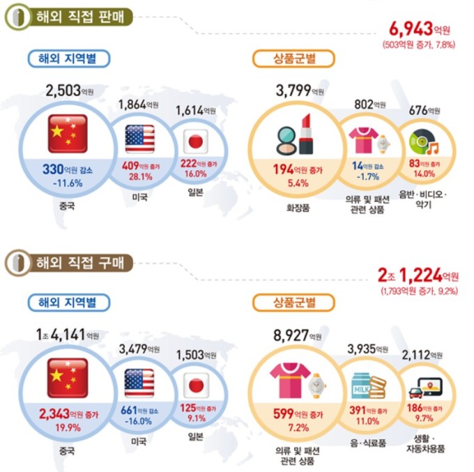 3분기 온라인 해외 직접 판매액은 6943억원으로 전년 동분기 대비 7.8% 증가했고, 해외 직접 구매액은 2조1224억원으로 9.2% 증가했다.