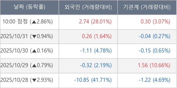 [장중수급포착] 성광벤드, 외국인/기관 동시 순매수… 주가 +2.86%