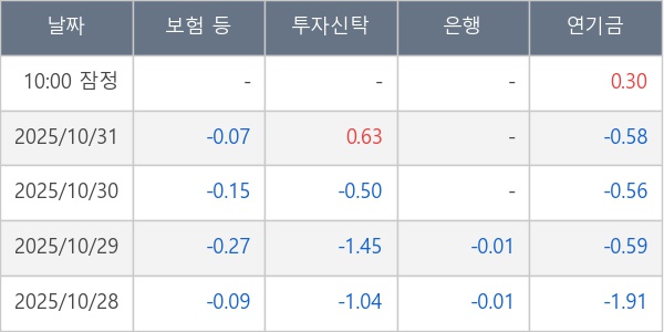 [표] 주요 기관별 순매매량 (단위 만주)