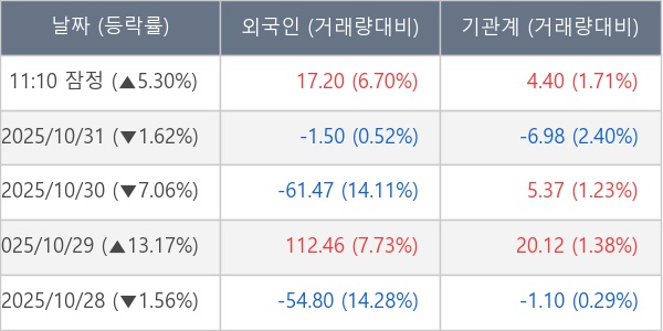 ※ 사모펀드 등 일부 기관의 순매매량은 표시되지 않음