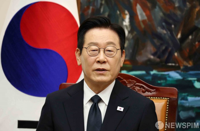 [서울=뉴스핌] 윤창빈 기자 = 시정연설을 위해 국회를 방문한 이재명 대통령이 4일 국회의장접견실에서 우원식 국회의장 등과의 환담에서 발언하고 있다. 2025.11.04 pangbin@newspim.com