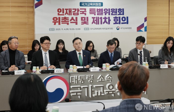 [서울=뉴스핌] 이길동 기자 =차정인 국가교육위원회 위원장이 4일 서울 종로구 정부서울청사에서 열린 국가교육위 인재강국 특별위원회 위촉식 및 제1차 회의에서 인사말을 하고 있다.2025.11.04 gdlee@newspim.com