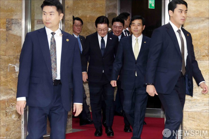 [서울=뉴스핌] 윤창빈 기자 = 이재명 대통령이 4일 오전 서울 여의도 국회 본청에서 열린 국회 본회의에서 2026년도 예산안 및 기금운용계획안 대통령 시정연설을 위해 본회의장으로 이동하고 있다. 2025.11.04 pangbin@newspim.com
