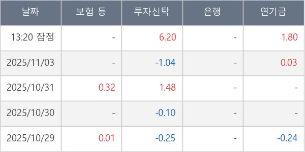 ※ 사모펀드 등 일부 기관의 순매매량은 표시되지 않음