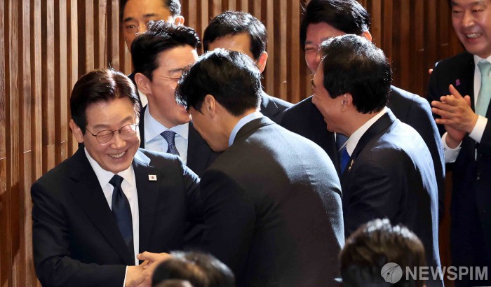 [서울=뉴스핌] 윤창빈 기자 = 이재명 대통령이 4일 오전 서울 여의도 국회 본회의장에서 내년도 정부 예산안에 대한 시정연설을 마치고 퇴장하고 있다. 국민의힘은 불참했다. 2025.11.04 pangbin@newspim.com