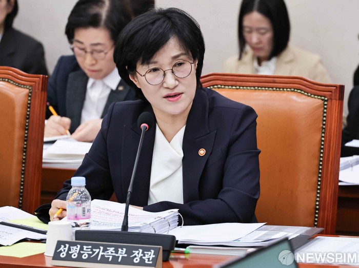 [서울=뉴스핌] 윤창빈 기자 = 원민경 성평등가족부 장관이 4일 서울 여의도 국회에서 열린 성평등가족위원회의 성평등가족부 등 국정감사에서 질문에 답변하고 있다. 2025.11.04 pangbin@newspim.com