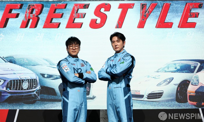 [서울=뉴스핌] 최지환 기자 = 팀 N2의 박규승 선수, god 멤버 데니안이 5일 오후 서울 중구 웨스틴조선 서울에서 열린 슈퍼레이스 프리스타일 제작발표회에서 포즈를 취하고 있다. 오는 7일 첫 공개를 앞둔 티빙 오리지널 슈퍼레이스 프리스타일은 '2025 오네 슈퍼레이스 챔피언십'을 무대로 국내 촤정상급 드라이버들이 우승을 향해 도전하는 카레이싱 예능이다. 2025.11.05 choipix16@newspim.com