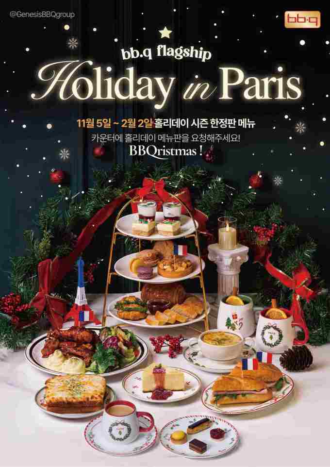 '홀리데이 인 파리'는 'BBQ와 함께 하는 세계여행' 시리즈의 다섯 번째 챕터다. 메뉴부터 공간 디자인까지 프랑스, 파리 크리스마스의 낭만과 감성을 그대로 구현했다.