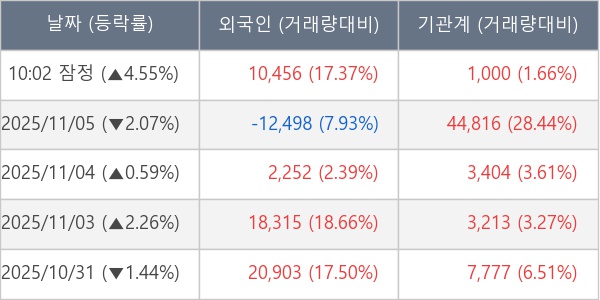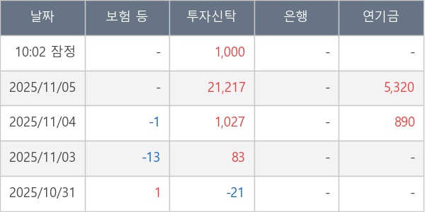 [표] 주요 기관별 순매매량 (단위 주)