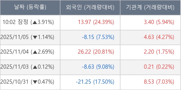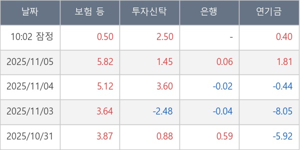 [표] 주요 기관별 순매매량 (단위 만주)