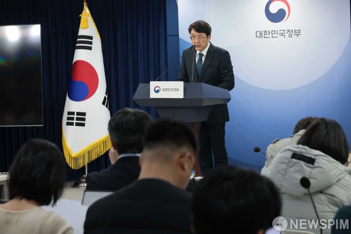 [서울=뉴스핌] 이길동 기자 =최우혁 과학기술정보통신부 네트워크정책실장이 6일 서울 종로구 정부서울청사에서 KT 침해사고에 대한 민관합동조사단의 중간조사 결과를 브리핑하고 있다.2025.11.06. gdlee@newspim.com