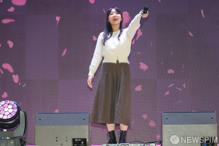 [성남=뉴스핌] 류기찬 기자 = 가수 조은세가 6일 오후 경기 성남시 수정구 성보경영고등학교에서 열린 '2025 경기도교육청 찾아가는 생명존중 캠페인'에서 무대를 선보이고 있다. 2025.11.06 ryuchan0925@newspim.com