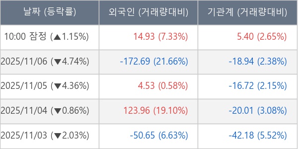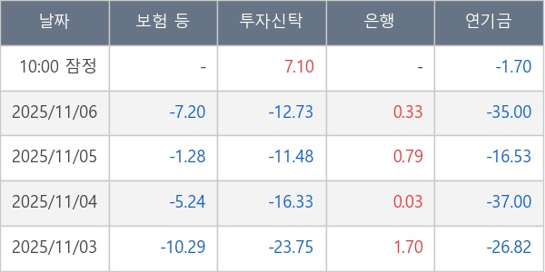 [표] 주요 기관별 순매매량 (단위 만주)
