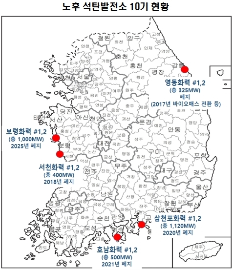 | 정부가 2018년 2월 폐지를 결정한 노후 석탄발전소 10기 현황 [자료=산업통상부] 2025.11.07 dream@newspim.com |