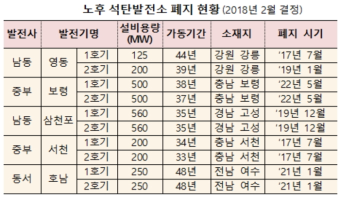 2018년 노후 석탄발전 10기 폐지 결정