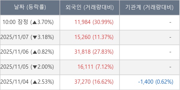 [표] 외국인ㆍ기관 순매매량 (단위 주)
