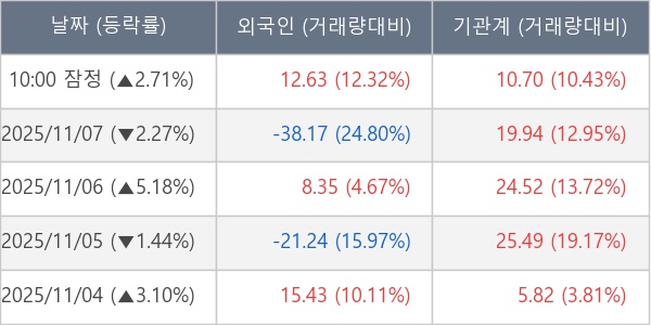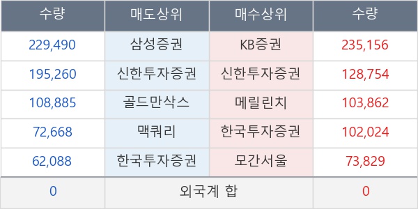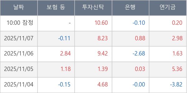 [표] 주요 기관별 순매매량 (단위 만주)