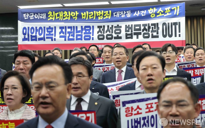국민의힘 '대장동 항소 포기, 정성호 장관 규탄한다'