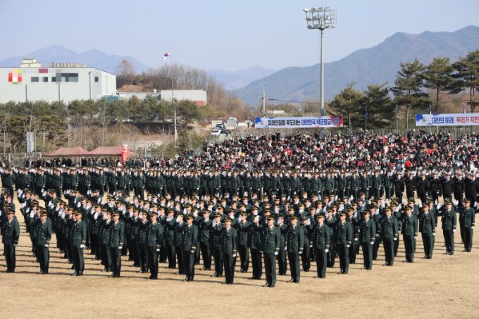 | 학군장교(ROTC) 63기 새내기 장교들이 지난 2월 28일 충북 괴산 학생중앙군사학교에서 열린 임관식에서 기념사진을 찍고 있다. [사진=국방일보] 2025.11.10 gomsi@newspim.com |