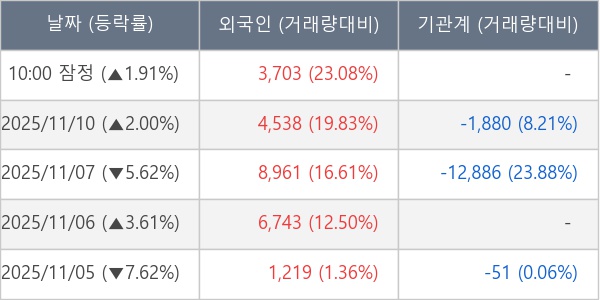 [표] 외국인ㆍ기관 순매매량 (단위 주)