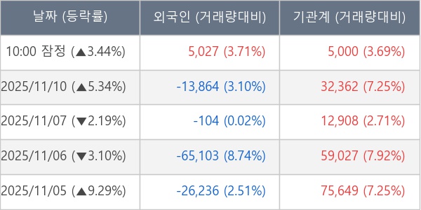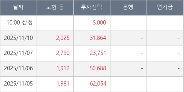 [표] 주요 기관별 순매매량 (단위 주)