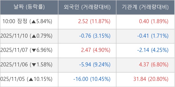 ※ 사모펀드 등 일부 기관의 순매매량은 표시되지 않음