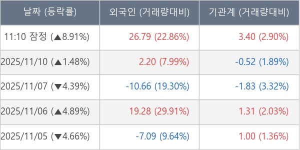 ※ 사모펀드 등 일부 기관의 순매매량은 표시되지 않음