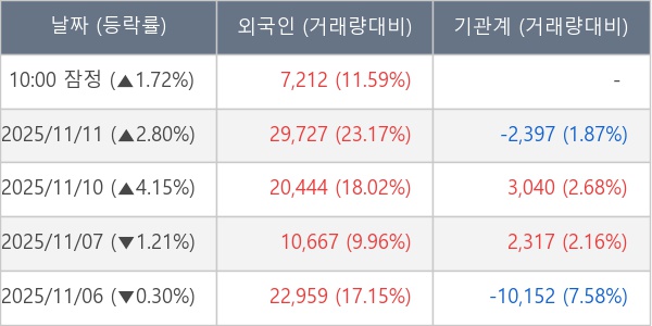 [표] 외국인ㆍ기관 순매매량 (단위 주)