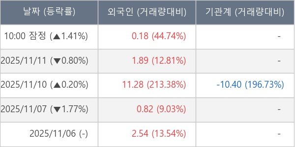 [표] 외국인ㆍ기관 순매매량 (단위 만주)