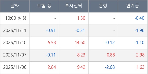 ※ 사모펀드 등 일부 기관의 순매매량은 표시되지 않음