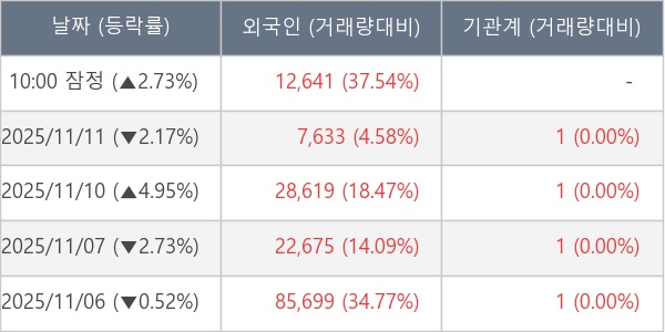 [표] 외국인ㆍ기관 순매매량 (단위 주)