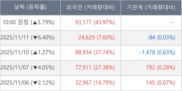 [표] 외국인ㆍ기관 순매매량 (단위 주)