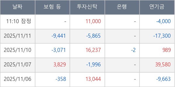 ※ 사모펀드 등 일부 기관의 순매매량은 표시되지 않음