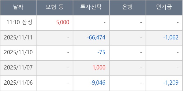 [표] 주요 기관별 순매매량 (단위 주)