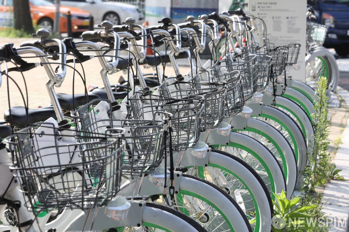 | 图为位于首尔汝矣岛的共享单车。【图片=纽斯频通讯社】 |