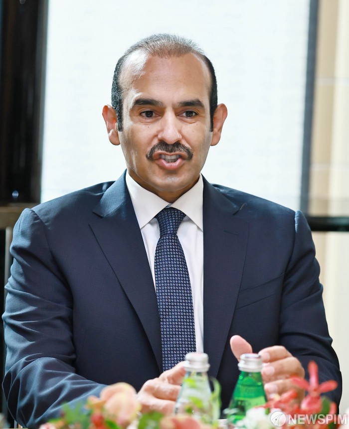 [서울=뉴스핌] 알 카비(Al Kaabi) 카타르 에너지 담당 국무장관이 12일 서울 종로구 포시즌스호텔에서 김정관 산업통상부 장관과 회담을 하고 있다. 이날 회담에서 에너지 공급망 협력을 중심으로 양국 간 협력 강화 방안을 논의했다. [사진=산업통상부] 2025.11.12 photo@newspim.com