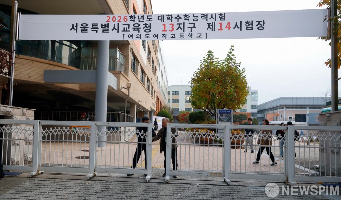 [서울=뉴스핌] 류기찬 기자 = 2026학년도 대학수학능력시험이 실시된 13일 오전 서울 영등포구 여의도여자고등학교에서 입실시간이 종료되자 관계자들이 출입문을 닫고 있다. 2025.11.13 ryuchan0925@newspim.com