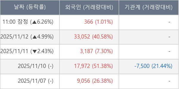 [표] 외국인ㆍ기관 순매매량 (단위 주)