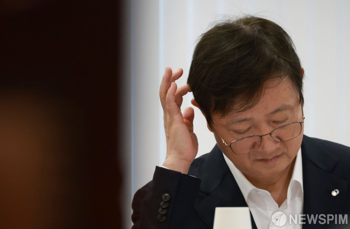 [서울=뉴스핌] 김학선 기자 = 이찬진 금융감독원장이 13일 서울 여의도 금감원에서 열린 금융소비자보호 중심의 금융감독 전환을 위한 금융소비자보호 토론회에서 잠시 생각에 잠겨 있다. 2025.11.13 yooksa@newspim.com