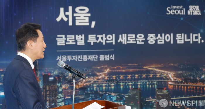 [서울=뉴스핌] 류기찬 기자 = 오세훈 서울시장이 13일 오전 서울 종로구 서울글로벌센터에서 열린 서울투자진흥재단 출범식에서 발언을 하고 있다. 2025.11.13 ryuchan0925@newspim.com