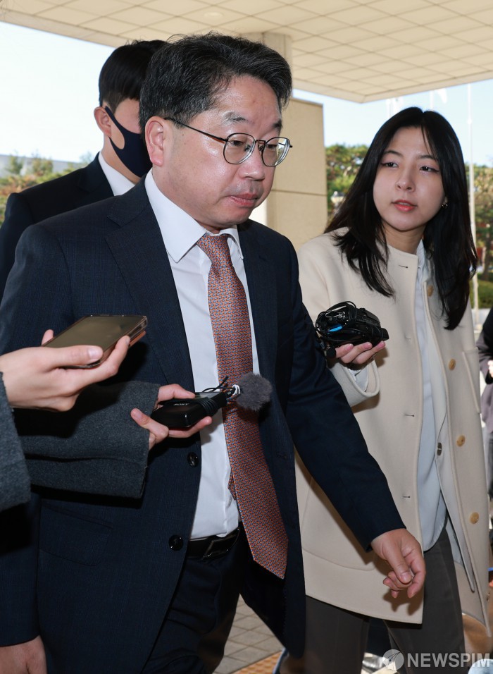 [서울=뉴스핌] 김학선 기자 = '대장동 개발 비리 사건' 항소 포기 논란 끝에 사의를 표명한 노만석 검찰총장 권한대행(대검찰청 차장)이 14일 오전 서울 서초구 대검찰청에서 열린 비공개 퇴임식에 참석하고 있다. 2025.11.14 yooksa@newspim.com
