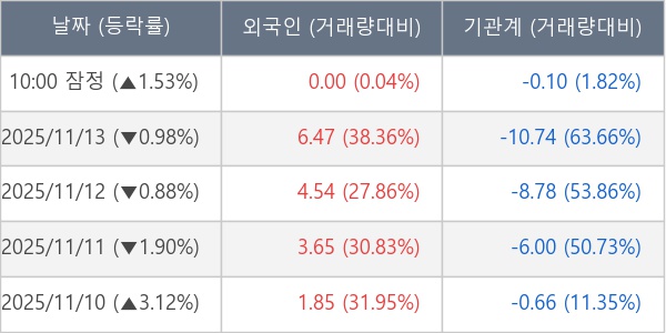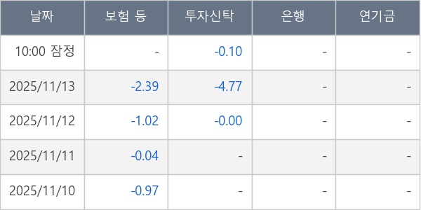 [표] 주요 기관별 순매매량 (단위 만주)