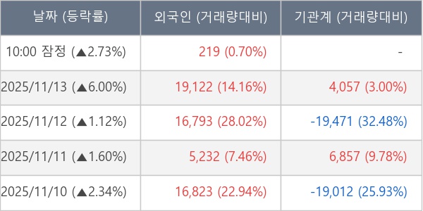 [표] 외국인ㆍ기관 순매매량 (단위 주)