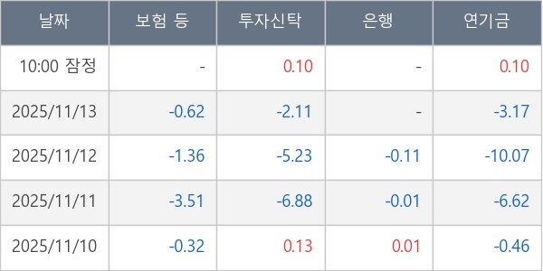 [표] 주요 기관별 순매매량 (단위 만주)