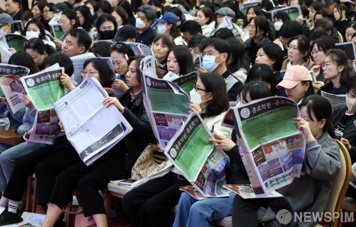 [서울=뉴스핌] 최지환 기자 = 14일 오후 서울 광진구에서 열린 종로학원 2026학년도 정시 합격점수 예측 및 전략 설명회에서 학부모 및 수험생들이 배치표를 살펴보고 있다. 2025.11.14 choipix16@newspim.com