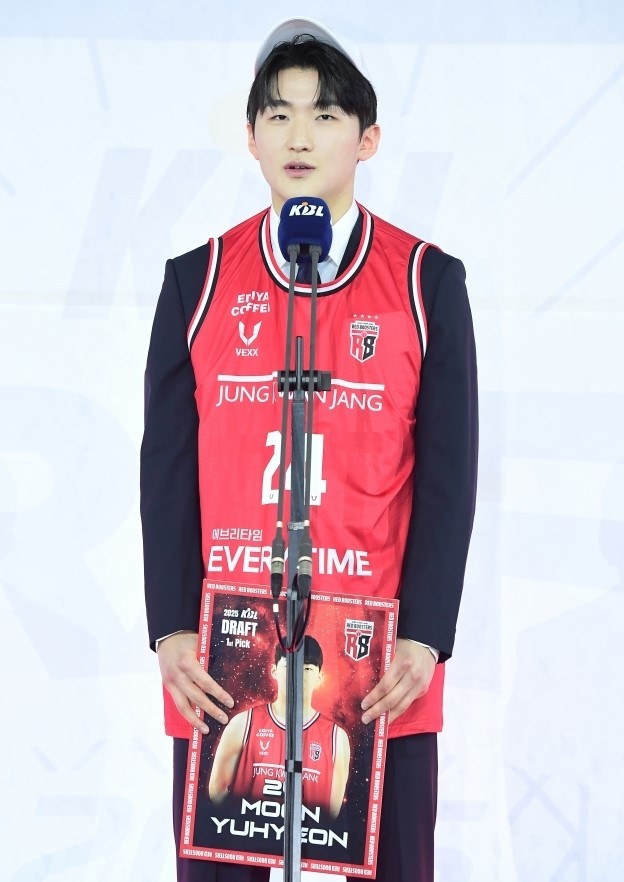 유도훈 정관장 감독은 14일 서울 잠실학생체육관에서 열린 2025 프로농구 신인 드래프트에서 전체 1순위로 고려대 가드 문유현을 선택했다. 정관장은 7%의 낮은 확률을 뚫고 1순위 지명권을 잡았다. 문유현이 정관장 유니폼을 입은 사진까지 패널로 준비해놓을 만큼 확신을 보였다.