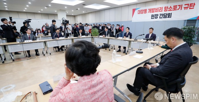 [성남=뉴스핌] 류기찬 기자 = 장동혁 국민의힘 대표와 국민의힘 의원들이 14일 오후 경기 성남시 분당구 성남도시개발공사에서 열린 ‘대장동 개발비리 항소포기 규탄 현장 간담회’에 참석하고 있다. 2025.11.14 ryuchan0925@newspim.com