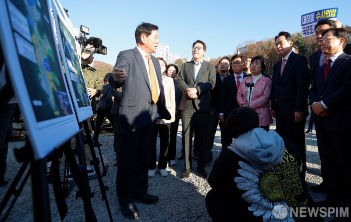[성남=뉴스핌] 류기찬 기자 = 장동혁 국민의힘 대표가 14일 오후 경기 성남시 분당구 대장동 사회기반시설 건설현장에 방문해 현장을 살펴보고 있다. 2025.11.14 ryuchan0925@newspim.com