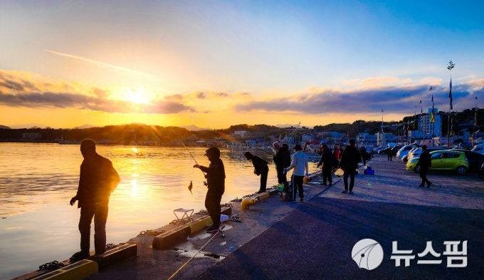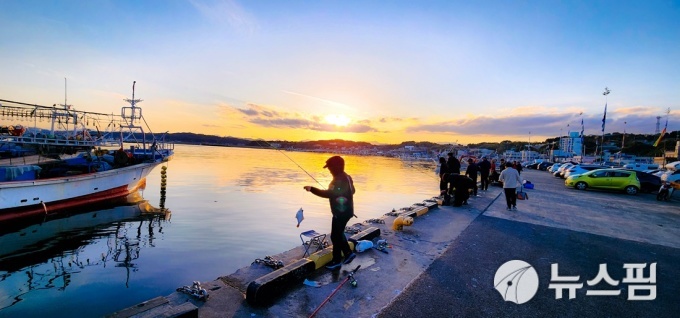 [울진=뉴스핌] 남효선 기자 = 11월 세 번째 주말인 15일 일몰 무렵, 붉은 노을을 배경으로 바다낚시 마니아들이 학꽁치, 넙치 낚시 삼매경에 빠져 있다. 최근 죽변 앞바다에 학꽁치와 넙치(광어) 떼가 출몰하자 죽변항 물양장은 입소문을 타고 전국에서 달려온 바다낚시객들로 초만원을 이루고 있다.2025.11.15 nulcheon@newspim.com