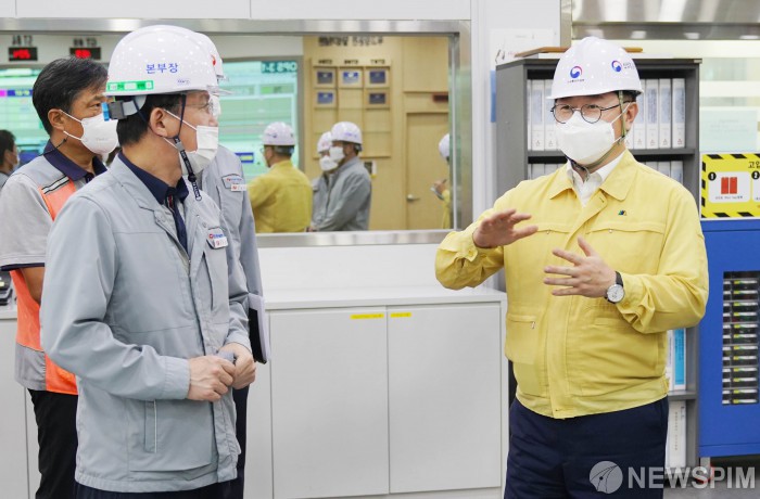 | [서울=뉴스핌] 박일준 산업통상자원부 2차관이 3일 태풍 '힌남노' 북상에 대비해 동서발전 울산화력발전소를 긴급 방문, 태풍 대비태세 등을 점검하고 있다. [사진=산업통상자원부] 2022.09.03 photo@newspim.com |